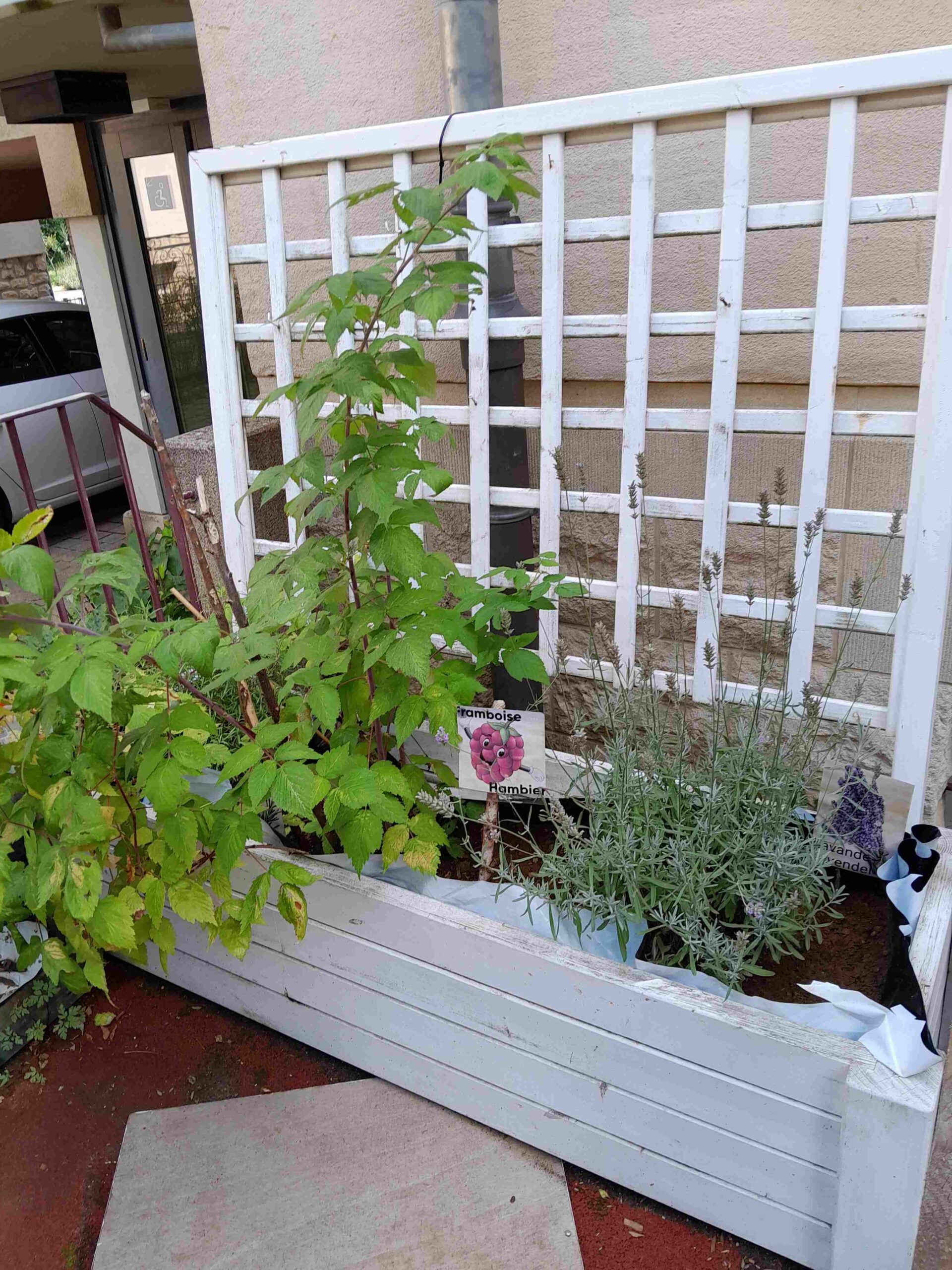 Nous avons proposé aux enfants de repenser notre extérieur et créer un potager participatif (pour tous les groupes de la structure, mais aussi avec les parents). Nous avons collecté des palettes pour en faire notre support (jardinières), des bouteilles d’eau (pour en faire des arrosoirs et support de maintien des plants), des graines récoltées dans les légumes des années précédentes pour replanter. Nous avons recouvert les palettes d’une bâche de récupération pour y mettre le terreau et y planter les graines et plants choisis avec les enfants. Les enfants ont peint les palettes selon leur envies et bricolés des guirlandes et autres décorations et dessinés une banderole pour animer le potager et le rendre visible et accueillant pour tous. Nous avons aussi piqué des images de chaque fruits et légumes plantés avec leur noms écrit en français et luxembourgeois. L’objectif dans ce projet est de :