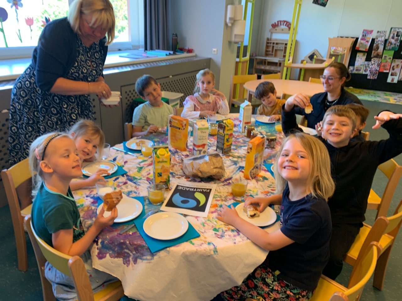 – Es wird für die Eltern ein Informationsstand aufgebaut wo an einzelnen Tagen neue Fairtrade Produkte zum Probieren bereit liegen. Dies kann mit den Eltern bei der Abholsituation der Kinder aufgegriffen werden.