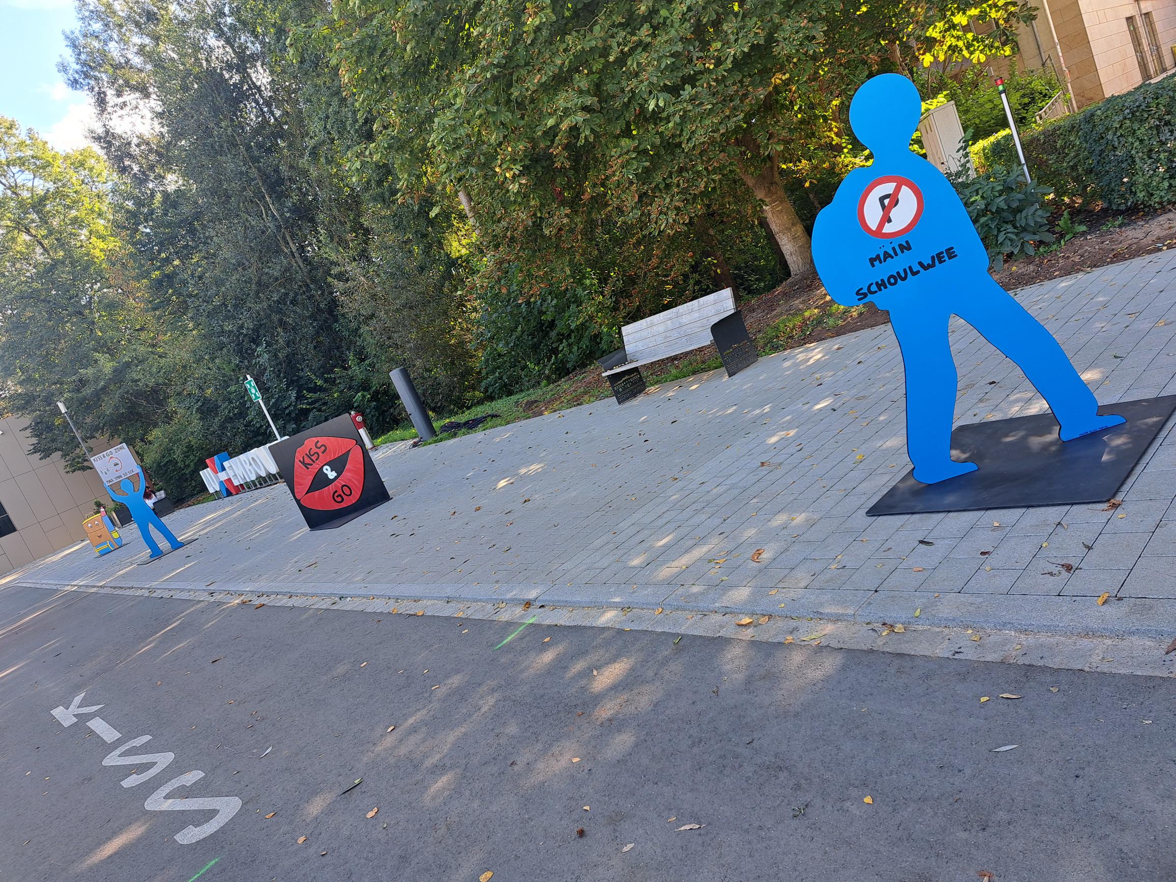 KISS&GO sécher gestallten. Maison Relais & d’Schoul vu Mäerzeg kruten am Fréijoer 2023 hiren Kiss&Go. Deen huet Ufanks awer net esou funktionéiert wéi een sech dat virgestallt huet. D’Autoe goufen geparkt oder et gouf sech op den Schoulwee vun de Kanner geparkt. Kanner aus der Maison Relais & hir Erzéier hunn sech dann iwwerluecht wat een kéint maachen. D’Iddi ass entstanen fir Figuren op déi Platz ze setzen sou dass keen Auto méi kann do parken an dass den Kiss&Go visibel gëtt. An der Summervakanz 2023 hunn sech eng +- 15 Kanner (Alter 6-12 Joer) dann un d’Aarbecht gemaach an, gezeechent/geschlaff/ugestrach. Hëllef beim Seeën haten si vum Atelier vun der Gemeng Mäerzeg. Den fäerdegen Projet gouf dann fir d’Rentrée 2023/2024 um Kiss&Go opgeriicht. D’Kanner si frou fir hier Aarbecht all Dag ze gesinn an virun allem dass déi hiren Zweck erfëllt.