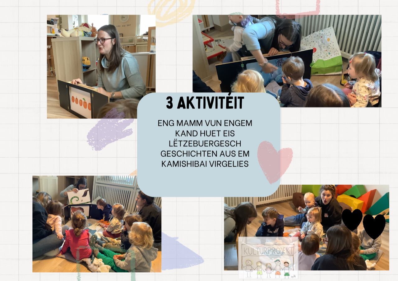 Luxemburg profitiert von der Präsenz mehrerer Nationalitäten und einem großen sprachlichen Reichtum. Unser Alltag in der Crèche entwickelt sich in einem multikulturellen & mehrsprachigen Raum, der sich in jedem Tag der Crèche widerspiegelt. Für unsere Kinder & Eltern haben wir ein Projekt ausgewählt, das direkt mit unserem Kontext und unseren Bedürfnissen zusammenhängt. Wir sehen das mehrsprachige Repertoire in unserem Team & der Elternschaft als eine Chance & Ressource für unser jährliches Kulturprojekt. Die unterschiedlichen Sprachen der Kinder werden wertgeschätzt & anerkannt, sodass das Kulturprojekt bereits seit Jahren fest in unserem CAG verankert ist.