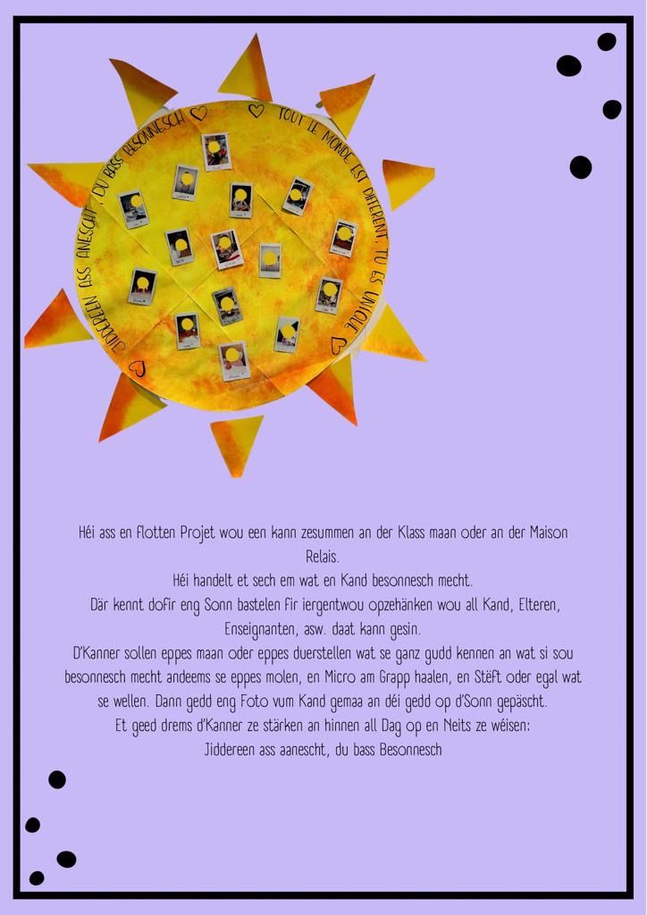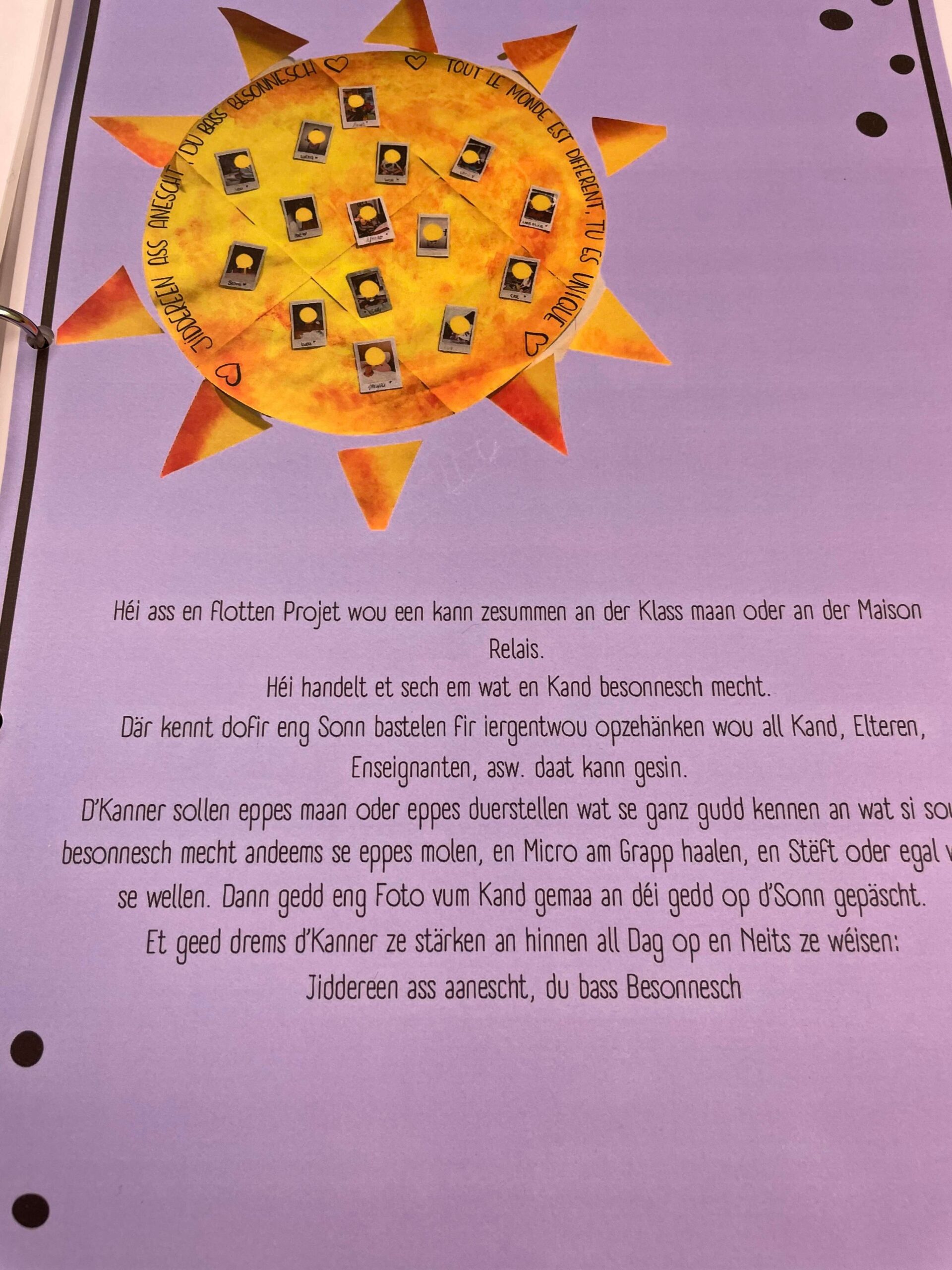 Sur le soleil on peut lire : « Tout le monde est différent ! Tu es unique ».