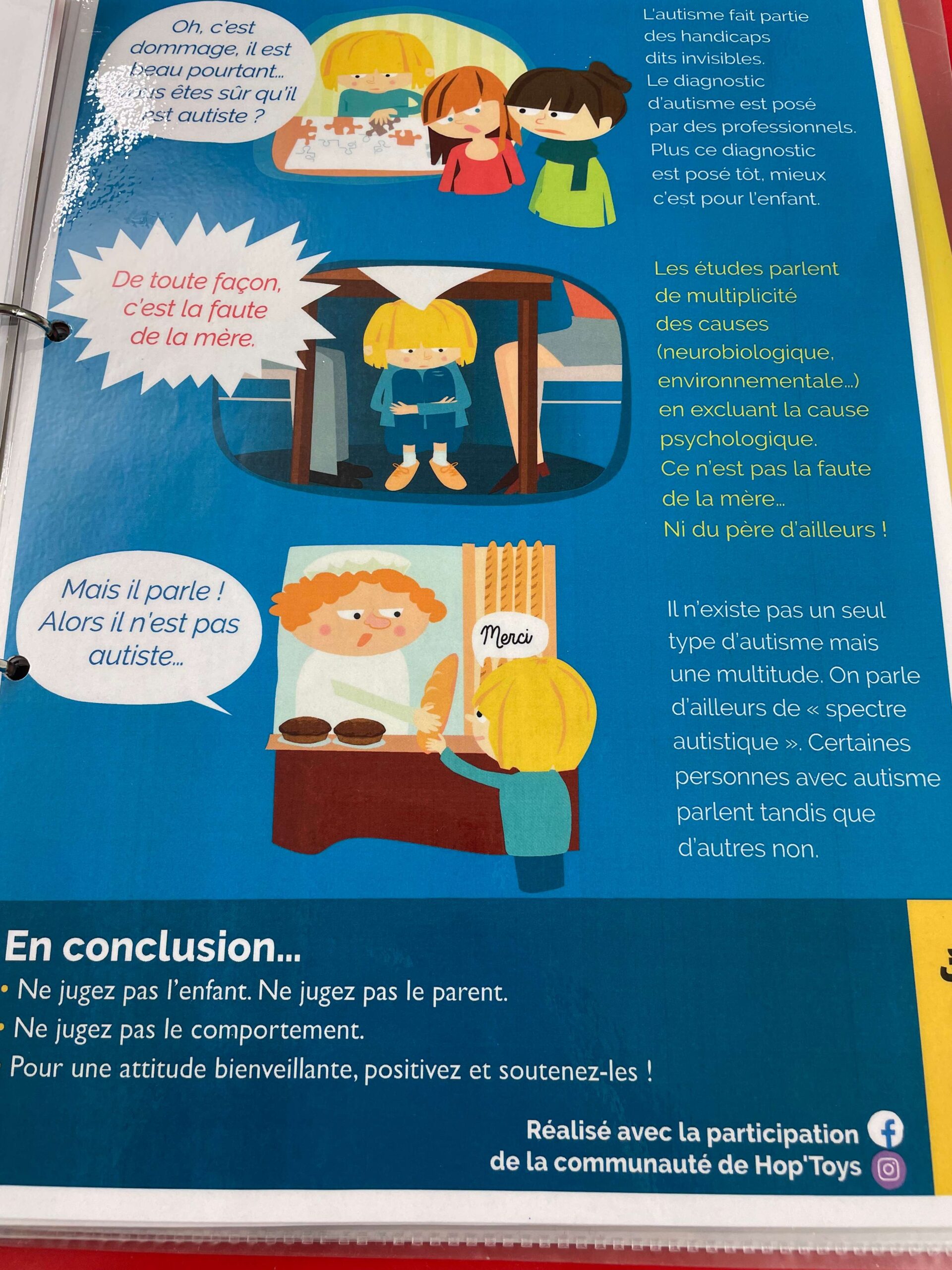 C’est ainsi que nous avons décidé de créer une boîte regroupant des livres, des informations, des jeux et bricolages ayant pour objectif de traiter le sujet de l’autisme mais aussi de parler des différences de tout un chacun.