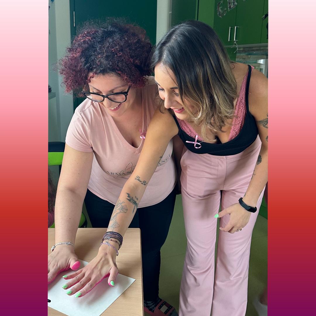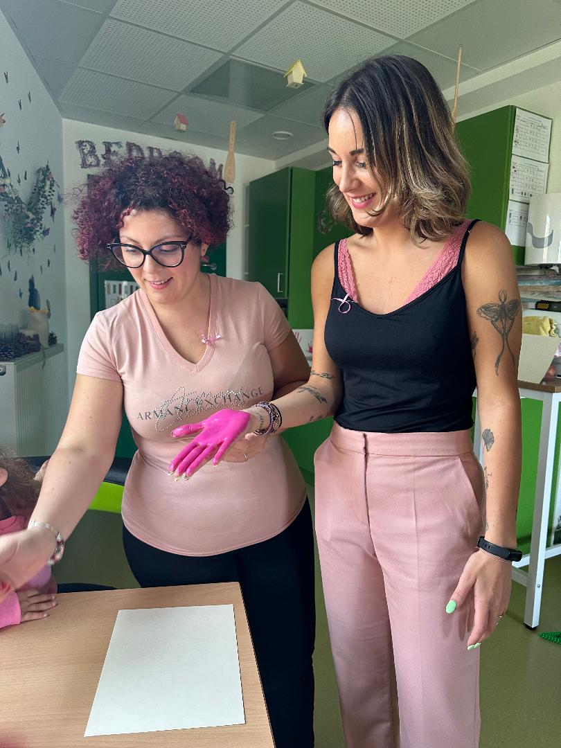 Nous souhaitons sensibiliser les enfants et leurs familles à l’intégration de la différence dès le plus jeune âge. A cet effet, nous nous intéressons particulièrement aux journées dédiées à la trisomie 21, la journée mondiale de l’autisme ou encore Octobre Rose. Lors de la journée mondiale de la trisomie 21, nous valorisons la diversité et la différence en portant des chaussettes dépareillées en collaboration avec les parents et les enfants. Une manière d’inclure les enfants dans notre société, même si pour l’instant ils sont encore trop jeunes pour comprendre l’impact de cette action. Enfiler des chaussettes dépareillées, c’est se mobiliser pour la journée mondiale de la Trisomie 21. 15 Enfants de 1 à 2,5 ans et éducateurs ont fait de cette action citoyenne une action collective unissant petits et grands. Octobre Rose est une campagne annuelle destinée à sensibiliser les Femmes particulièrement, au dépistage du cancer du Sein. Le symbole de cet évènement est un ruban rose. Durant cette période chacun y participe de différentes façons, cela peut se traduire par un challenge sportif, une manifestation. Afin d’amener le sujet d’une manière créative aux enfants nous avons réalisé une toile avec les empreintes de main de chacun d’eux et dessiner un très grand ruban rose au milieu de la toile, nous avons ensuite agrémenté de quelques mots symboliques tels que : Ensemble, lutte …. Cette toile inclus les enfants d’une manière original à une cause importante. Nous avons aussi créé de petits rubans rose pour chaque enfant et terminé par une jolie photo traduisant un joli message de soutien. Le tout afin de décorer la section pour le goûter avec les mamans, au programme, échange et activité sont de la partie. Un beau moment convivial que les mamans, les enfants et les éducatrices ont apprécié. Ce premier goûter a été l’occasion pour nous, d’évoquer la volonté d’organiser un second rendez-vous avec l’éventuelle venue d’une intervenante de l’association Europa Donna Luxembourg. Au programme de ce second goûter, présentation d’un power-point, QCM et échange.