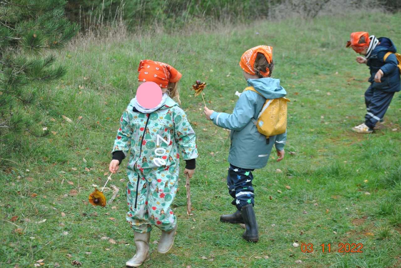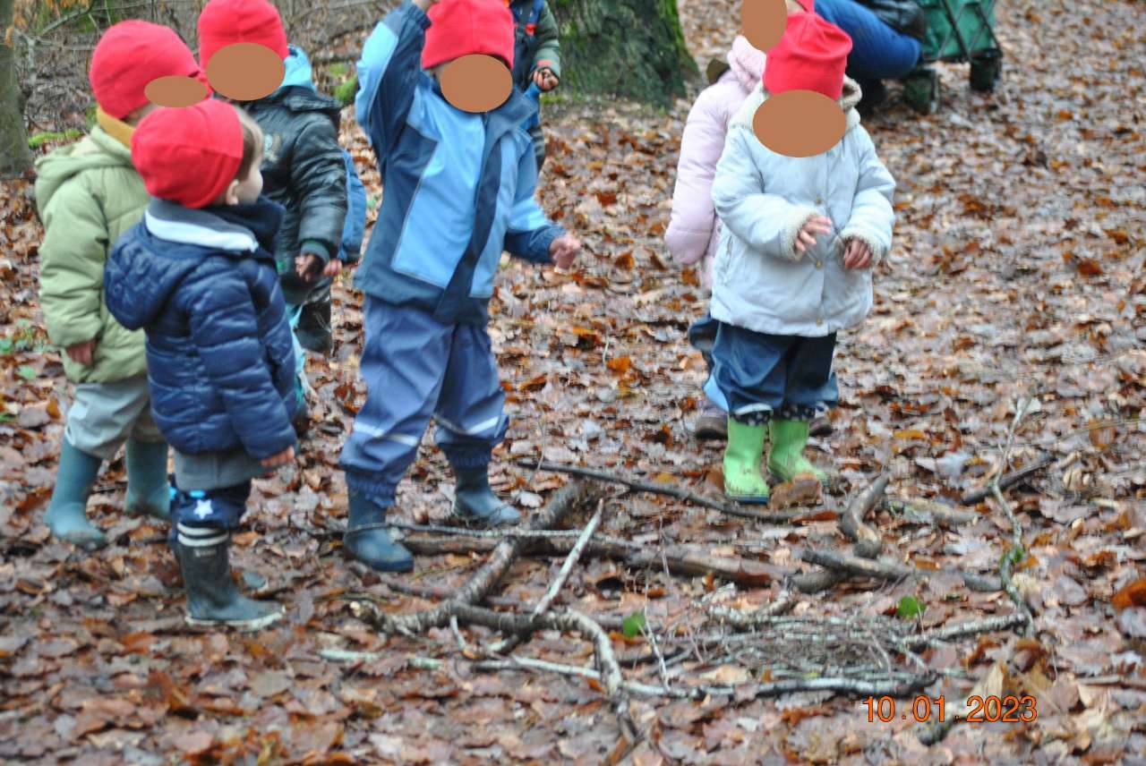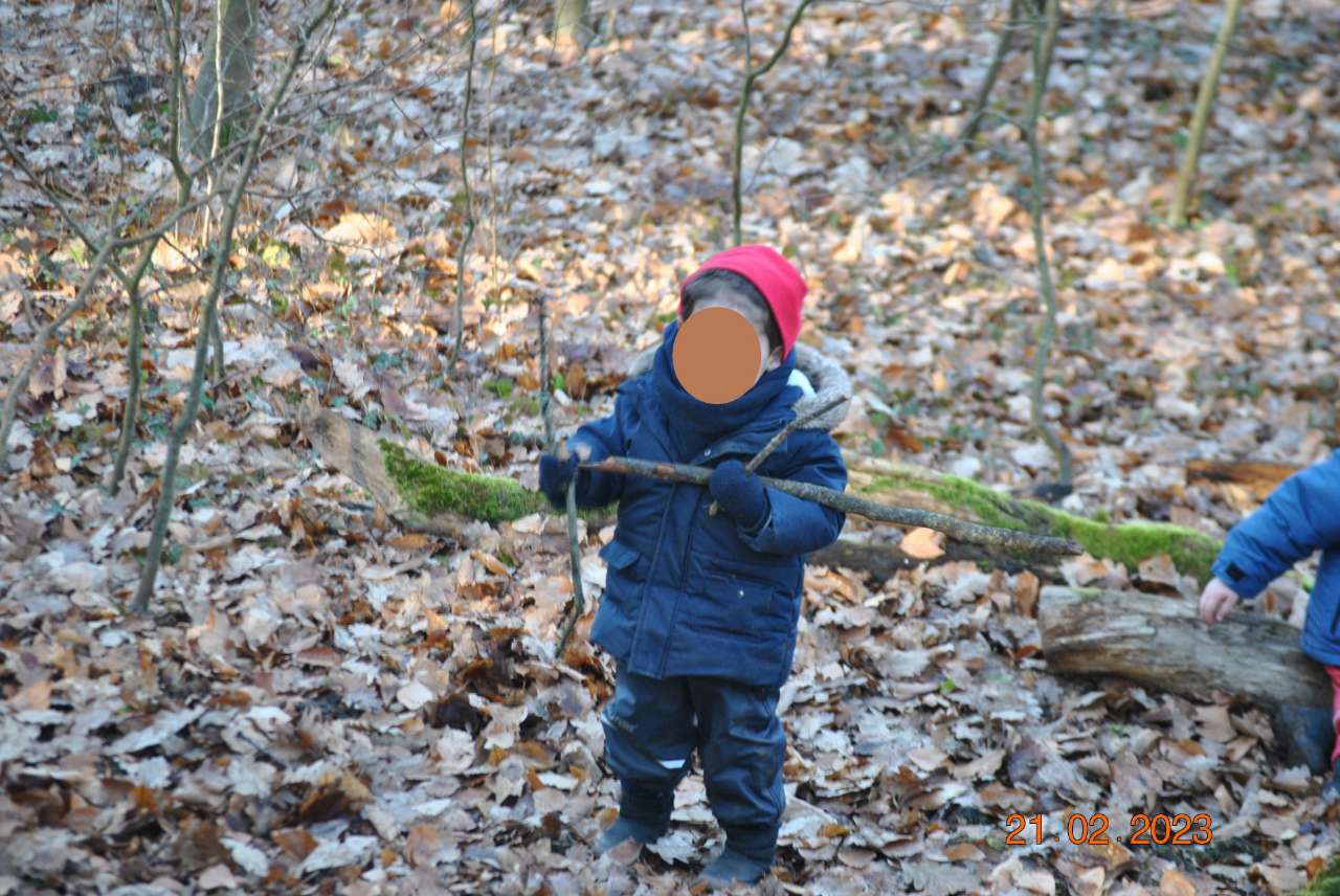 Enn vum Joer 2022 hu mir ee Projet Bësch mat deenen 3 Jardinsgruppen aus eisem Haus gestart. (Kanner vun 2-4 Joer). Mir si säitdem ëmmer Dënschdes Moies mat Kanner aus deenen dräi Gruppe gemëscht an de Bësch gefuer. Fir all Sortie hu mir Kanner vum nämmlechten Alter mat geholl, esou dass mir eis Aktivitéiten op den Alter vun de Kanner ofstëmmen konnten. Wei zum Beispill, sinn déi kleng Kanner déi fir éischt an Bësch mat eis gaangen sinn, emol fir éischt den Bësch entdecken gaang. Oflaf vun engem Moien am Bësch: Mir goungen an ee Bësch den mir gutt kënnen, an wou mir Plazen haten fir ze Pick-nicken an den Moieskrees ze maachen. Des Plazen waren schonn amenagéiert, hei sinn Beemstämm an engem Krees opgestallt, wou d’Kanner sech kënnen drop setzen. Wann mir ukomm sinn, sinn mir ëmmer bis op eis Pick-nickplaatz getrëppelt, an hunn eppes giess an gedronk. Duerno hunn mir ëmmer een Moieskrees gemaacht, bei dem mir eis Moien soen, an dann Lidder zum Thema Bësch, Bëschdéieren, Joreszäiten, asw. sangen. Heiansdo hu mir och eng Geschicht zum Thema Bësch mat de Kanner gelies. Nom Moieskrees hu mir mat de Kanner verschidden Aktivitéiten zum Thema Bësch mat de Kanner gemaacht. Mir hu Aktivitéiten gemaach, déi bei déi verschidden Joreszäiten passen, déi op Thema Déieren am Bësch passen an mir maachen motoresch Aktivitéiten an och Bastelaktivitéiten mat Naturmaterialien. Géint 11h15 maachen mir eis op den Wee fir zréck an den Foyer fir dass mir um 12h zeréck si fir d ‘Iessen. Am ganzen hunn 48 Kanner am Roulement zu 16 jeeweils deelgeholl.