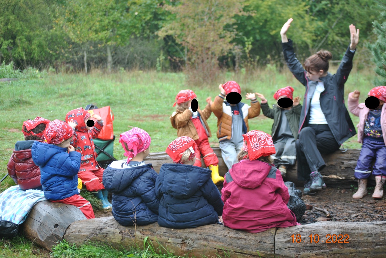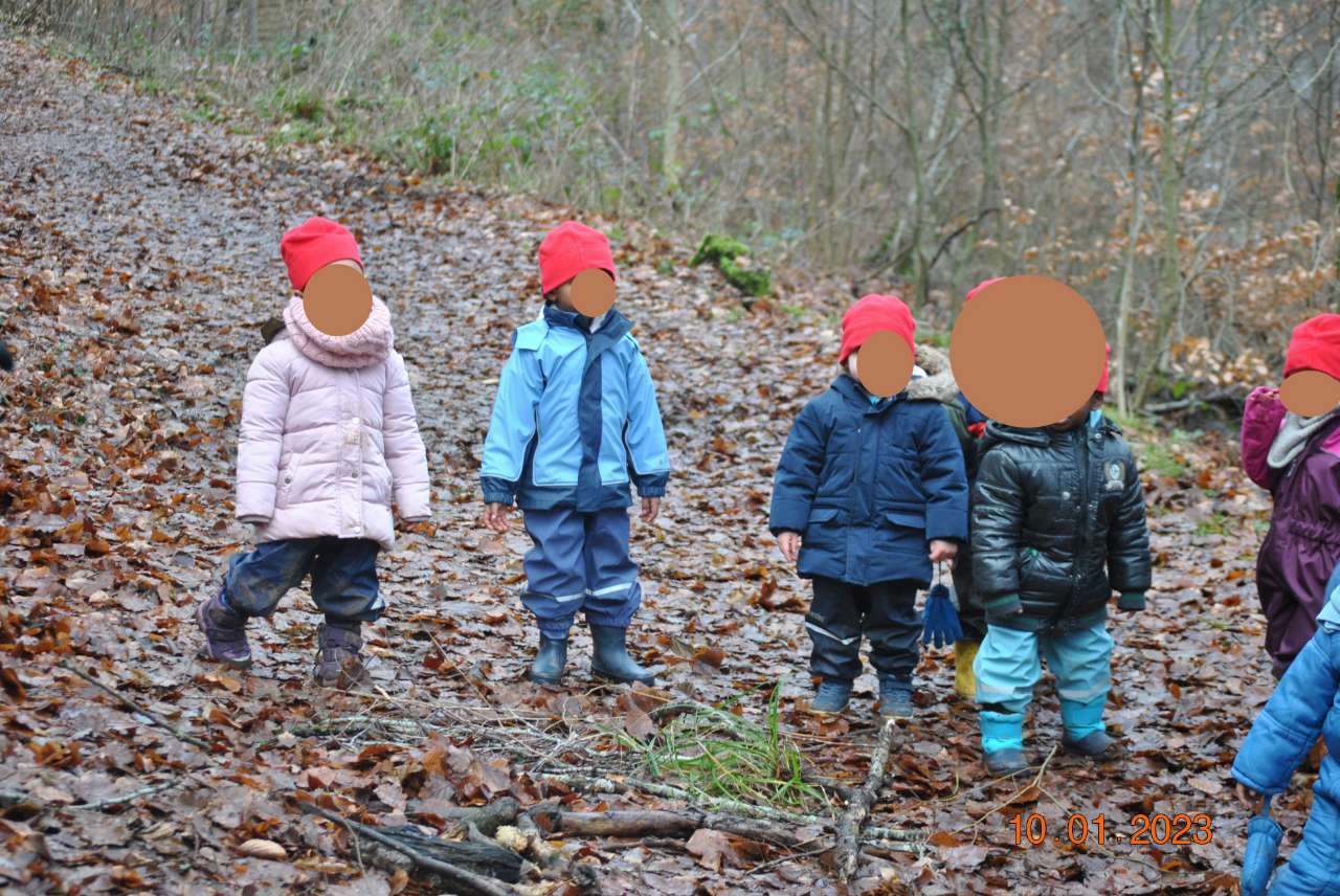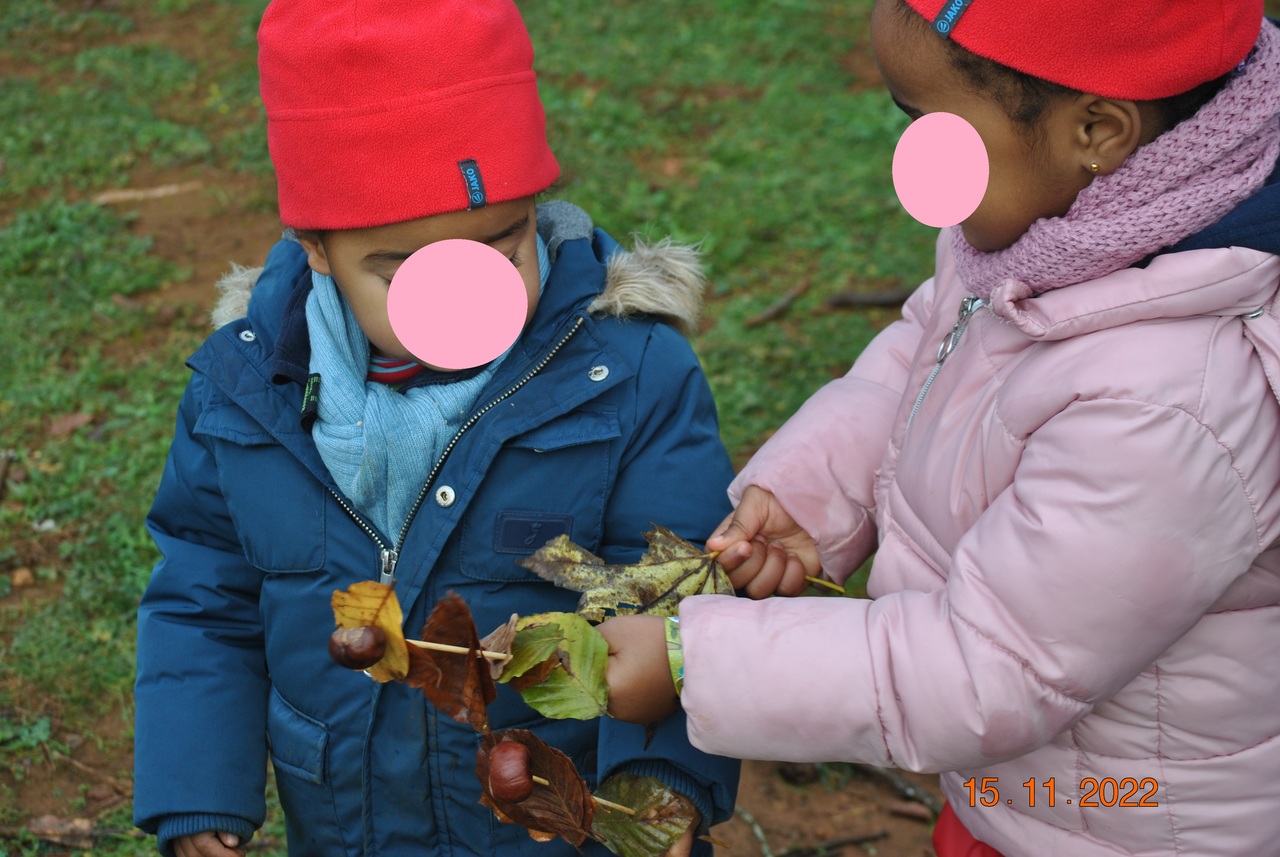 Enn vum Joer 2022 hu mir ee Projet Bësch mat deenen 3 Jardinsgruppen aus eisem Haus gestart. (Kanner vun 2-4 Joer). Mir si säitdem ëmmer Dënschdes Moies mat Kanner aus deenen dräi Gruppe gemëscht an de Bësch gefuer. Fir all Sortie hu mir Kanner vum nämmlechten Alter mat geholl, esou dass mir eis Aktivitéiten op den Alter vun de Kanner ofstëmmen konnten. Wei zum Beispill, sinn déi kleng Kanner déi fir éischt an Bësch mat eis gaangen sinn, emol fir éischt den Bësch entdecken gaang. Oflaf vun engem Moien am Bësch: Mir goungen an ee Bësch den mir gutt kënnen, an wou mir Plazen haten fir ze Pick-nicken an den Moieskrees ze maachen. Des Plazen waren schonn amenagéiert, hei sinn Beemstämm an engem Krees opgestallt, wou d’Kanner sech kënnen drop setzen. Wann mir ukomm sinn, sinn mir ëmmer bis op eis Pick-nickplaatz getrëppelt, an hunn eppes giess an gedronk. Duerno hunn mir ëmmer een Moieskrees gemaacht, bei dem mir eis Moien soen, an dann Lidder zum Thema Bësch, Bëschdéieren, Joreszäiten, asw. sangen. Heiansdo hu mir och eng Geschicht zum Thema Bësch mat de Kanner gelies. Nom Moieskrees hu mir mat de Kanner verschidden Aktivitéiten zum Thema Bësch mat de Kanner gemaacht. Mir hu Aktivitéiten gemaach, déi bei déi verschidden Joreszäiten passen, déi op Thema Déieren am Bësch passen an mir maachen motoresch Aktivitéiten an och Bastelaktivitéiten mat Naturmaterialien. Géint 11h15 maachen mir eis op den Wee fir zréck an den Foyer fir dass mir um 12h zeréck si fir d ‘Iessen. Am ganzen hunn 48 Kanner am Roulement zu 16 jeeweils deelgeholl.