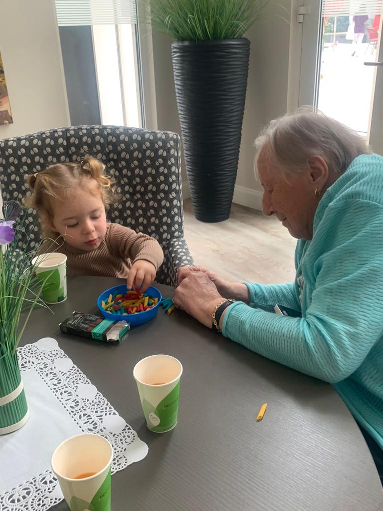 De ce fait, le partenariat mis en place avec la crèche Pomme d’Amour a pour but commun de créer des liens intergénérationnels et passer du bon temps au sein de la résidence entre les résidents et les enfants.