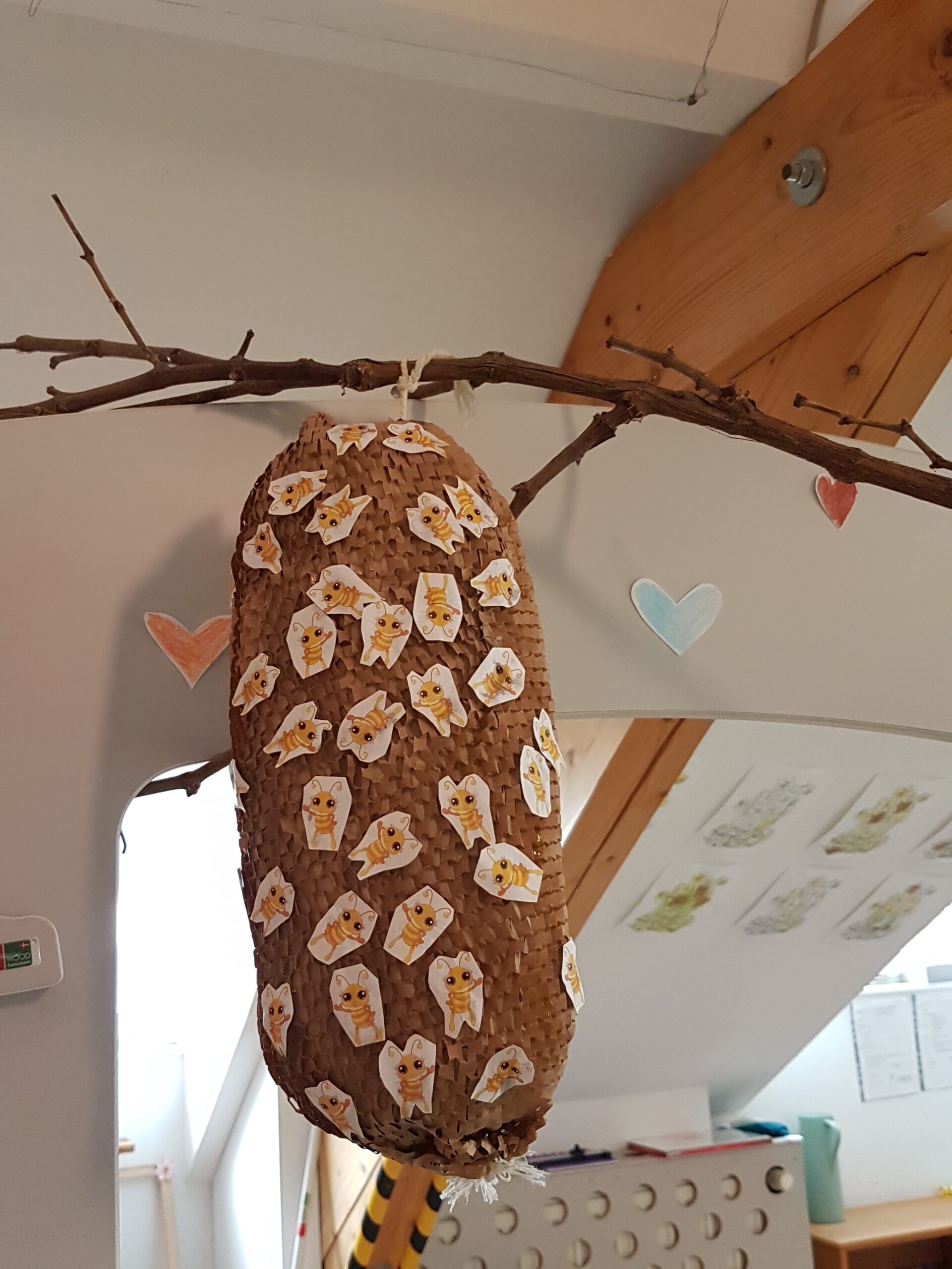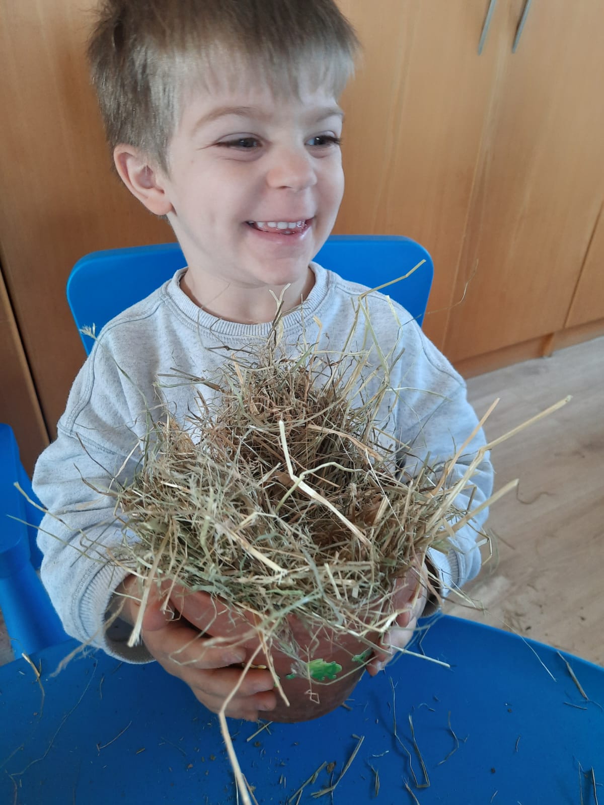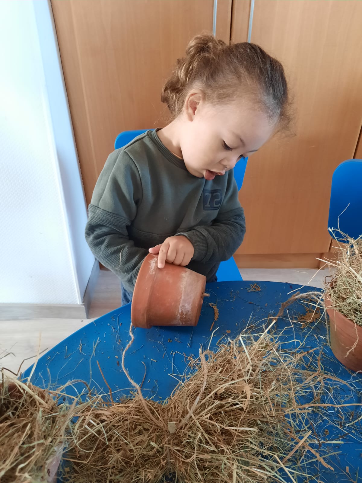 Il s’agit de proposer une fois par semaine, des activités qui concourent à sensibiliser le groupe au respect de l’environnement et au développement durable dans la bienveillance. L’utilisation d’ingrédients ou de matériaux naturels ou détournés (comme des chaussettes trouées ou orphelines pour faire des tawashis, des marrons d’inde pour faire de la lessive, des cartons pour fabriquer des jouets…) doit servir à la découverte de toutes les possibilités offertes par la nature et par le recyclage d’éléments du quotidien. A travers de recettes simples, d’exécutions faciles et de résultats immédiats (en associant et mélangeant deux huiles naturelles pour faire un démaquillant à offrir à maman), les enfants deviennent éco-responsables. Aujourd’hui, certains enfants du groupe ont compris que l’on éteint la lumière en quittant une pièce vide grâce à des duos de stickers « planète sad and sick/planète happy « installés par le groupe à tous les endroits susceptibles de gaspillage (sous les interrupteurs des espaces, sous les distributeurs d’essuie-mains). On retrouve cette satisfaction et responsabilisation lorsque les enfants s’acquittent régulièrement de confectionner des boules de graisse pour les oiseaux en hiver, différents hôtels à insectes selon les espèces et des seed bombs. Aussi le tri sélectif est intégré jour après jour avec les 3 poubelles dédiées, installées dans la section avec notre slogan « Finir son assiette c’est chouette, mettre à la poubelle c’est bête ». L’éco-attitude se trouve ainsi développée avec une certaine constante par ces petites actions et est infusée à la maison où les enfants eux-mêmes redirigent leurs parents vers les bons gestes éco-responsables. Le respect de tous les êtres sensibles passe aussi par de petits gestes proposés aux enfants. Les enfants sont fiers de leurs actions et ils savent que c’est bon pour la Planète. Grâce à ces activités, ils sont en connexion avec l’environnement, « Sauveurs de Planète ». 7 enfants entre 2 et 3 ans