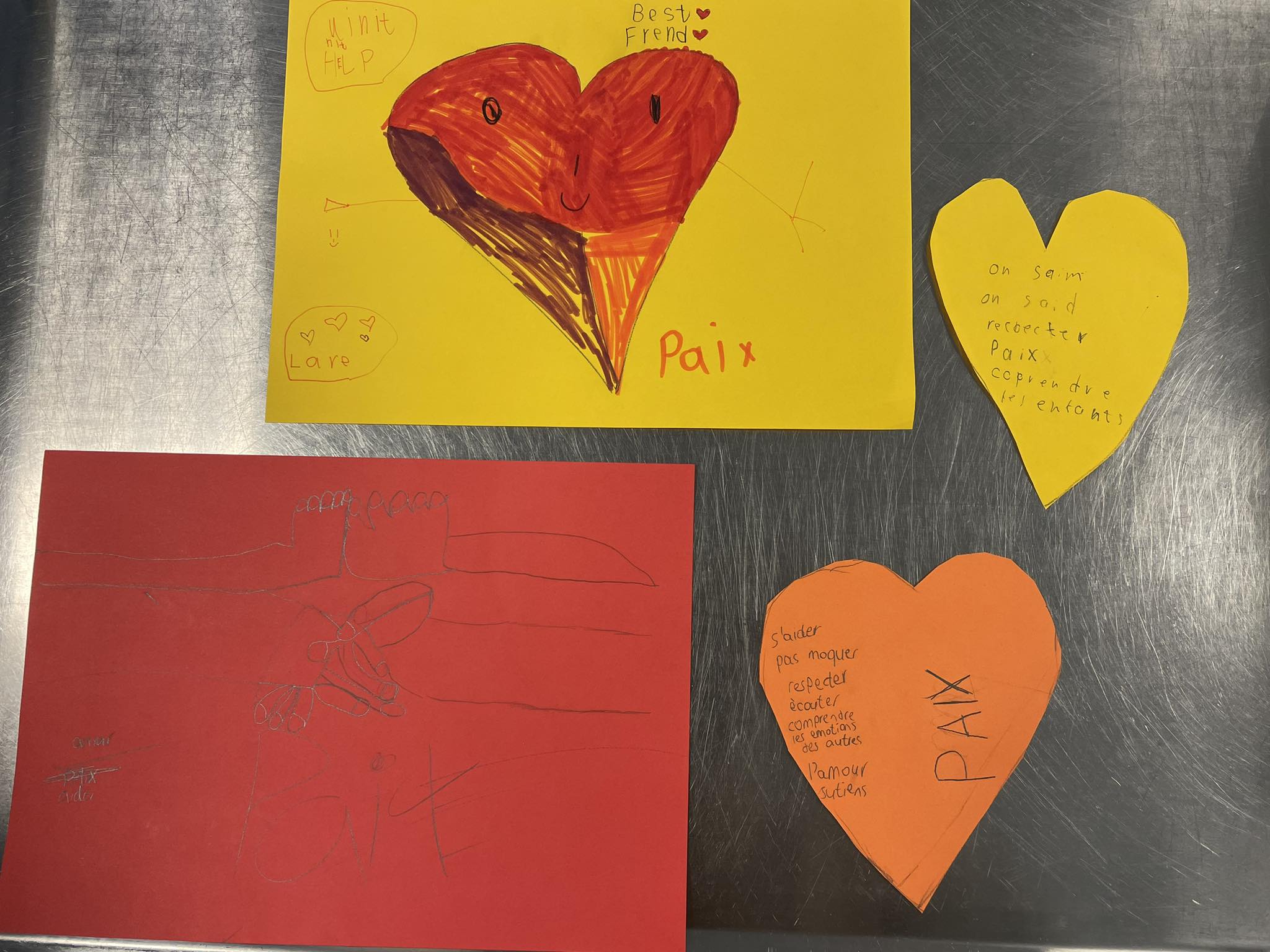 Nous avons décidé de sensibiliser les enfants au harcèlement scolaire qui est, malheureusement, de plus en plus présent au sein des écoles. Un des enfants subissait à l école et avait choisi de raconter son expérience à ses copains et de son ressenti face aux comportements de ses « harceleurs », de ses craintes et de son incompréhension sur ce qu’il vivait. Pour lui venir en aide, les enfants de son école avait proposé qu’elle vienne les voir cela recommençait en leur donnant un mot de passe choisi ensemble. Les enfants l’invitaient alors à se joindre à eux, empêchant ainsi ses « harceleurs » de continuer à l’embêter. Cette solution, très subtile et sans violence était une superbe trouvaille pour stopper la situation. Toutefois, nous voulions que les enfants aillent plus loin dans leur prise de conscience de ce fléau. Nous les avons invités à partager leur expérience, s’ils avaient déjà, de près ou de loin subi du harcèlement mais aussi, s’ils avaient déjà, sans le vouloir, contribué à du harcèlement. Ensemble, nous nous sommes demandés quelle était la limite à ne pas franchir pour qu’un comportement pris pour de la rigolade, dépasse la limite et devienne du harcèlement. Les enfants se sont exprimés et cela a suscité beaucoup d’empathie pour le groupe. Nous avons proposé à une écrivaine qui a illustré ce phénomène par le biais d’un livre de venir lire son livre aux enfants et d’échanger avec eux. Les enfants étaient ravis de sa venue et de pouvoir raconter leur histoire. Nous leur avons rappelé l’importance de dénoncer des comportements d’harcèlement auprès d’un adulte de confiance et de ne pas taire la situation. Lors d’une activité, chaque enfant pouvait dire un mot gentil, un compliment / un dessin chacun des enfants du groupe. Cela permet aux enfants de réfléchir à la place et l’importance des autres dans leur vie, l’impact des relations entre eux et de valoriser chacun d’eux. Cela renforce leur lien et les obligent à analyser les relations qu’ils entretiennent. 10 enfants de 7 à 11 ans ont participé à ce projet.